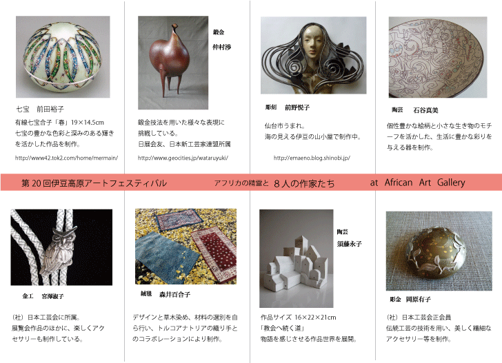 4月から6月までの3ヶ月間、伊豆高原アフリカンアートギャラリーにて「アフリカの精霊たちと8人の作家たち」展